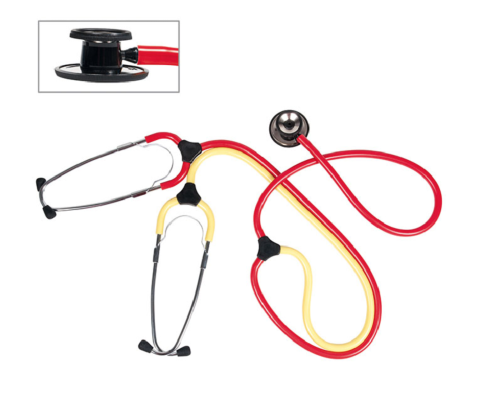 Tento fonendoskop umožňuje současné vyšetření dv...