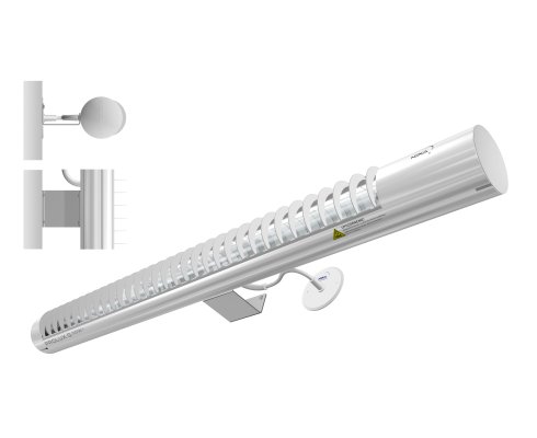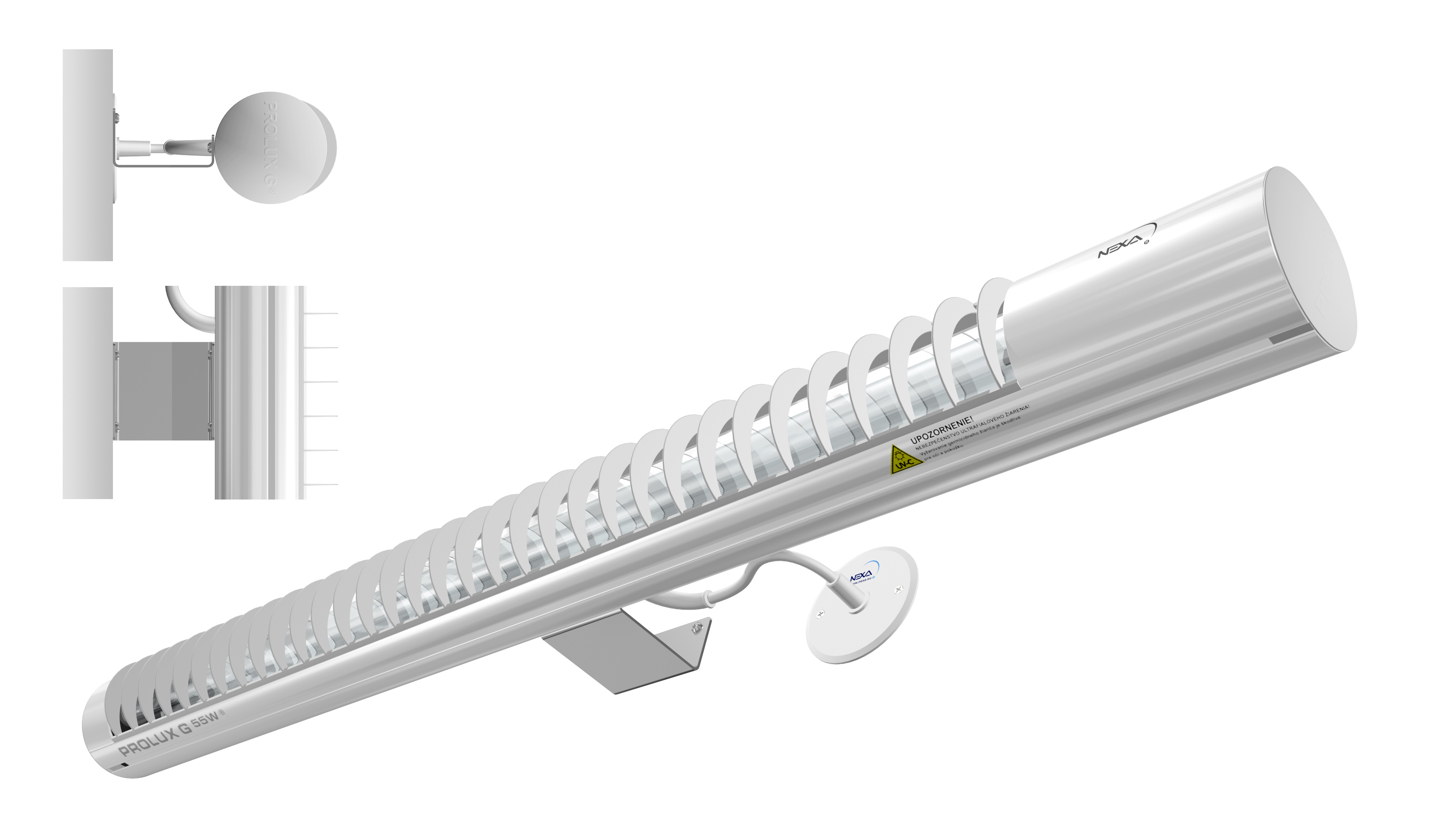 Otevřené germicidní zářiče s montáží na stěnu místnosti. Zářiče jsou dodávány ve dvou výkonových třídách (3...