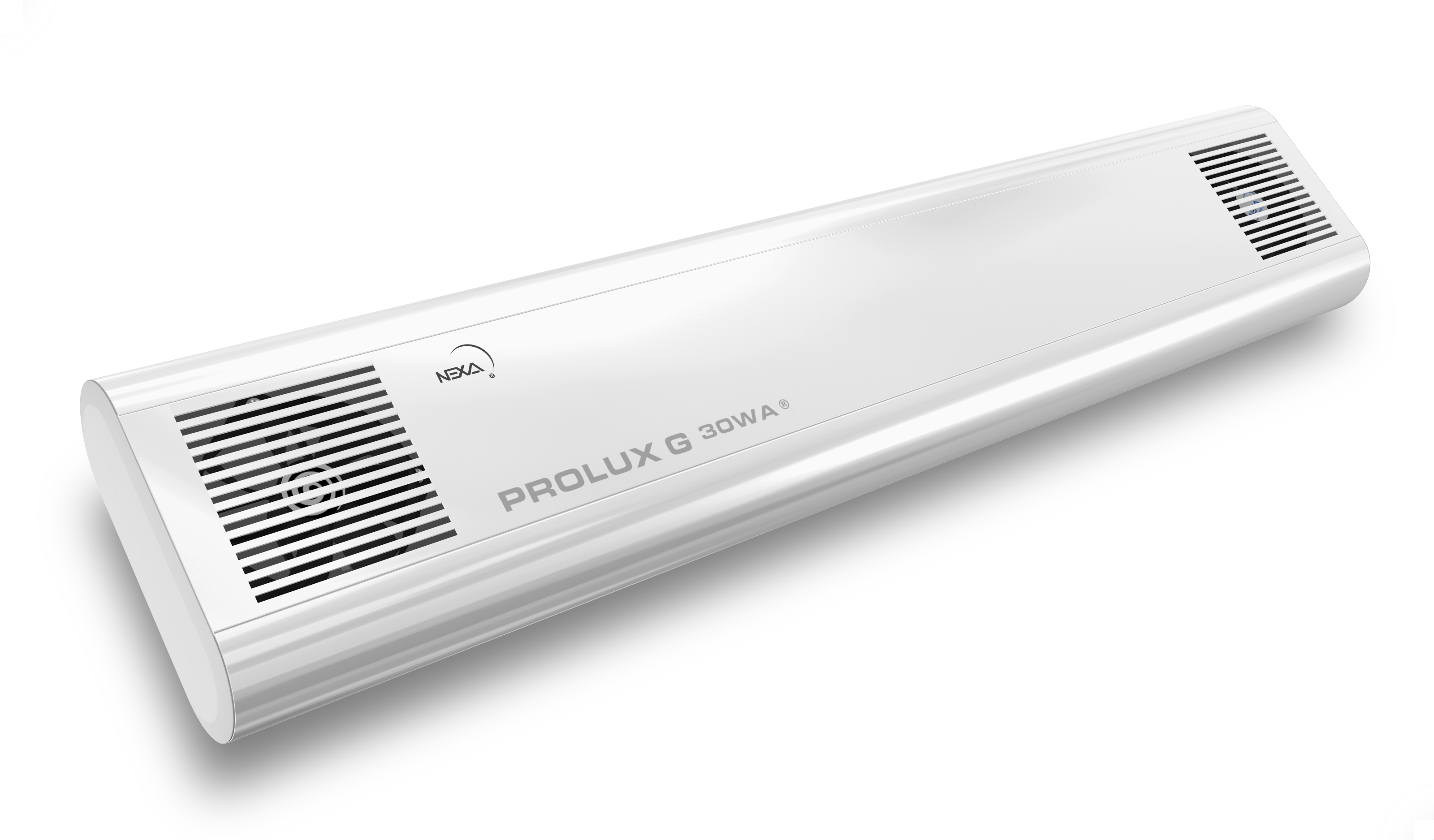 Tento typ zářiče je mimořádně praktický z toho důvodu, že jej lze používat i v přítomnosti lidí v místnosti. Provoz zářiče je velmi tichý díky ventilátorům s magnetickými ložisky. Jeden germicidní zářič PROLUX G® 30WA 820 je dostačující pro místnost o objemu do 150 m³. Zářič je určen k montáži na stěnu.