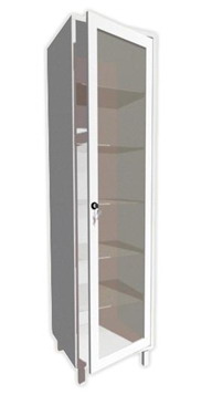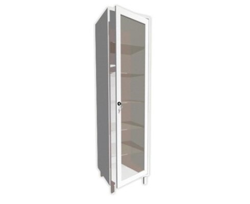 Jednodveřová kovová skříň vybavena bezpečnostním zámkem. Dveře jsou prosklené. Skříň má skleněné police. Po...