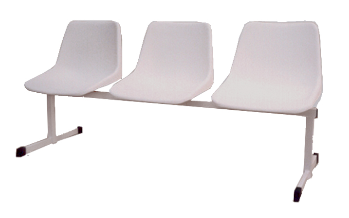 Bílé lakované nohy, plastové sedadla bílé barvy.