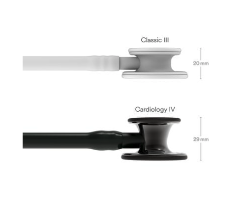 - Ergonomická a prepracovaná konštrukcia – o 40 % väčší hrudný snímač a o 60 % hlbší zvon v porovnaní s fonendoskopom 3M™ Littmann® Classic III™