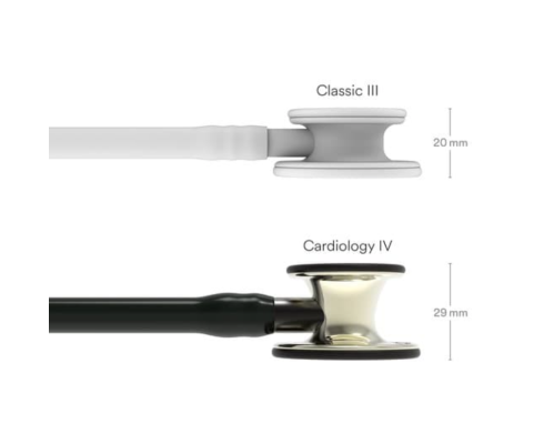 - Ergonomická a prepracovaná konštrukcia – o 40 % väčší hrudný snímač a o 60 % hlbší zvon v porovnaní s fonendoskopom 3M™ Littmann® Classic III™