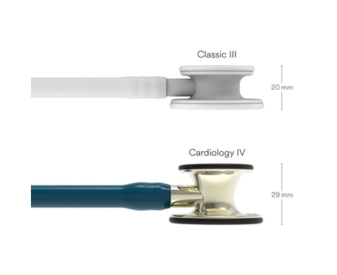 - Ergonomická a prepracovaná konštrukcia – o 40 % väčší hrudný snímač a o 60 % hlbší zvon v porovnaní s fonendoskopom 3M™ Littmann® Classic III™