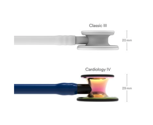 - Ergonomická a prepracovaná konštrukcia – o 40 % väčší hrudný snímač a o 60 % hlbší zvon v porovnaní s fonendoskopom 3M™ Littmann® Classic III™