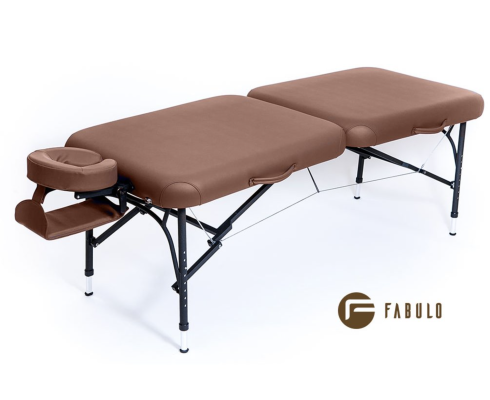 Profesionálne dvojdielne skladacie masážne lehátko Fabulo TITAN Set s extra stabilnou hliníkovou konštrukciou Vám ponúka osvedčenú vysokú kvalitu amerických lehátok Fabulo. Prenosné masérske lehátko Fabulo TITAN Set s jedenástimi kilogramami je absolútne najľahším lehátkom medzi prenosnými masážnymi stolmi. Jeho nízka hmotnosť je dosiahnutá ľahkým ale masívnym hliníkovým rámom a inovatívnou americkou konštrukciou, v ktorej je ako základ lôžka roztiahnutá pevná upínacia tkanina (zvyčajne sa používa v horolezectve). Vďaka tomu, že sa lehátko Fabulo TITAN vyrába bez preglejky, je absolútne nerozbitné a veľmi trvácne.