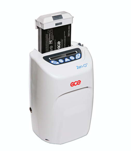 - Zen-O™ se může pochlubit praktickou a robustní konstrukcí, která zajišťuje vyšší efektivitu provozu a nízké náklady na vlastnictví. Tento přenosný kyslíkový přístroj váží pouhých 4,66 kg (10,27 lb.) a vydrží pracovat na baterie celé hodiny, takže si pacienti mohou maximálně svobodně užívat pobytu venku. Zen-O™ navíc umožňuje nabíjení střídavým i stejnosměrným proudem, takže jej lze nabíjet doma nebo v autě na cestách. Společnost GCE nabízí příslušenství, jako je taška nebo tažný vozík pro snadnou přepravu kyslíkového koncentrátoru.