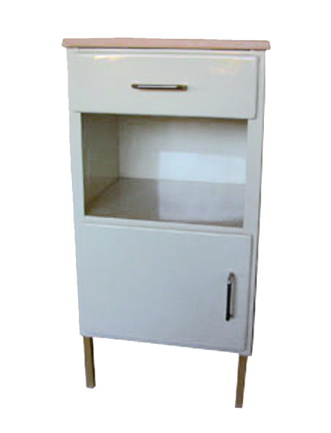 Kovová skříňka lakovaná práškovými barvami, spodní část s dvířky, v horní části zásuvka. Odkládací deska je...