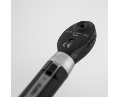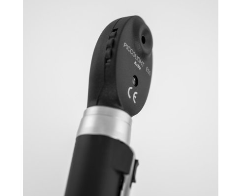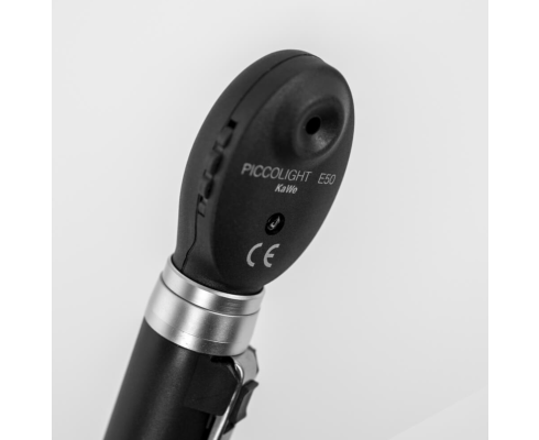 Oftalmoskop KaWe PICCOLIGHT® E50: Rúčka z umelej hmoty. Veľké vyšetrovacie pole s kruhovou plochou. Korekci...
