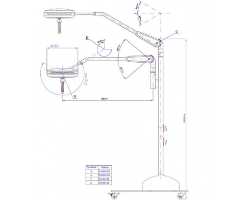 Poznámka: V prípade záujmu možno dodať vyšetrovaciu lampu v prevedení so zdvojenou osvetľovacou hlavicou (SOLIS 60/60). Zvýši sa intenzita osvetlenia na 120.000 lux a spotreba sa zvýši na 36W. Všetky ostatné parametre zostávajú ako pri modeli SOLIS 60+K2773