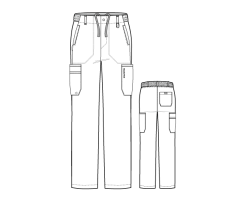 - Moderný strih s rovnými nohami. Vysok a čiastočne elastický pás, s nastaviteľnou sťahovacou šnúrkou a s pútkami na opasok.