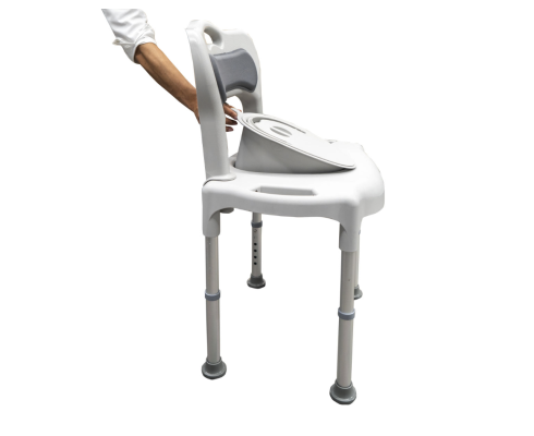 Mimořádně praktická a snadno použitelná mobilní toaleta a sprchová židle v jednom s nastavitelnou výškou a ...