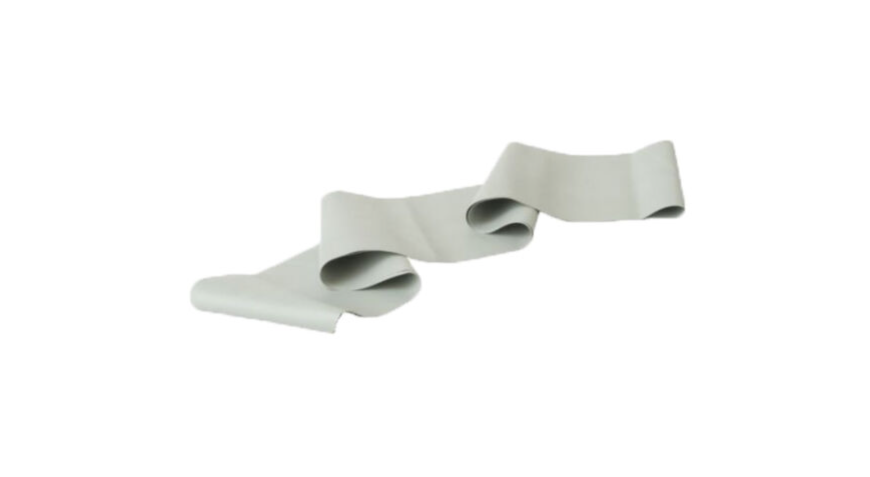 Thera-Band v striebornom prevedení. Ide o šiestý stupeň záťaže na škále farieb posilňovacích gúm Thera-Band...