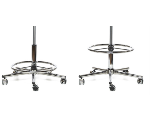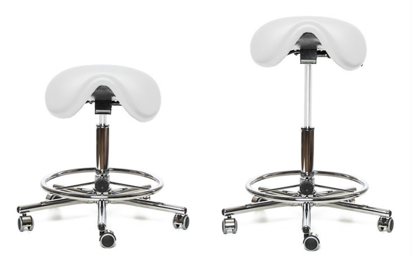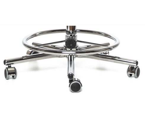 Pracovní židle určená pro ordinace, s tvarovaným sedákem a s pevnou chromovanou konstrukcí.