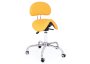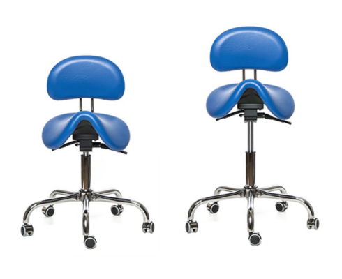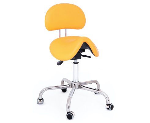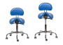 Pracovní židle určená pro ordinace, s tvarovaným sedákem a s pevnou chromovanou konstrukcí.