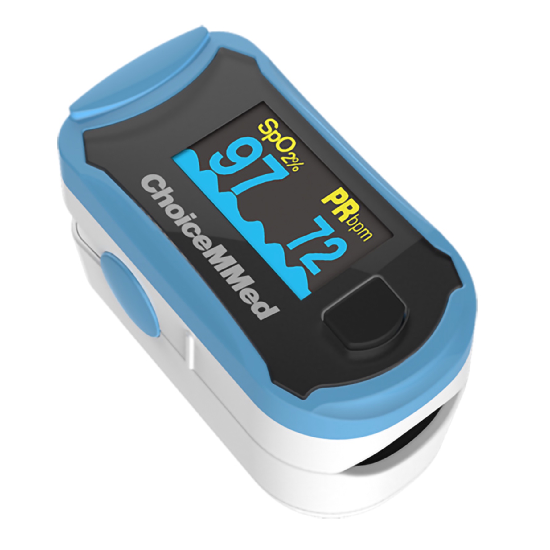 Pulzný oxymeter na prsty na sledovanie saturácie krvi kyslíkom, pulzovej frekvencie a indexu perfúzie.