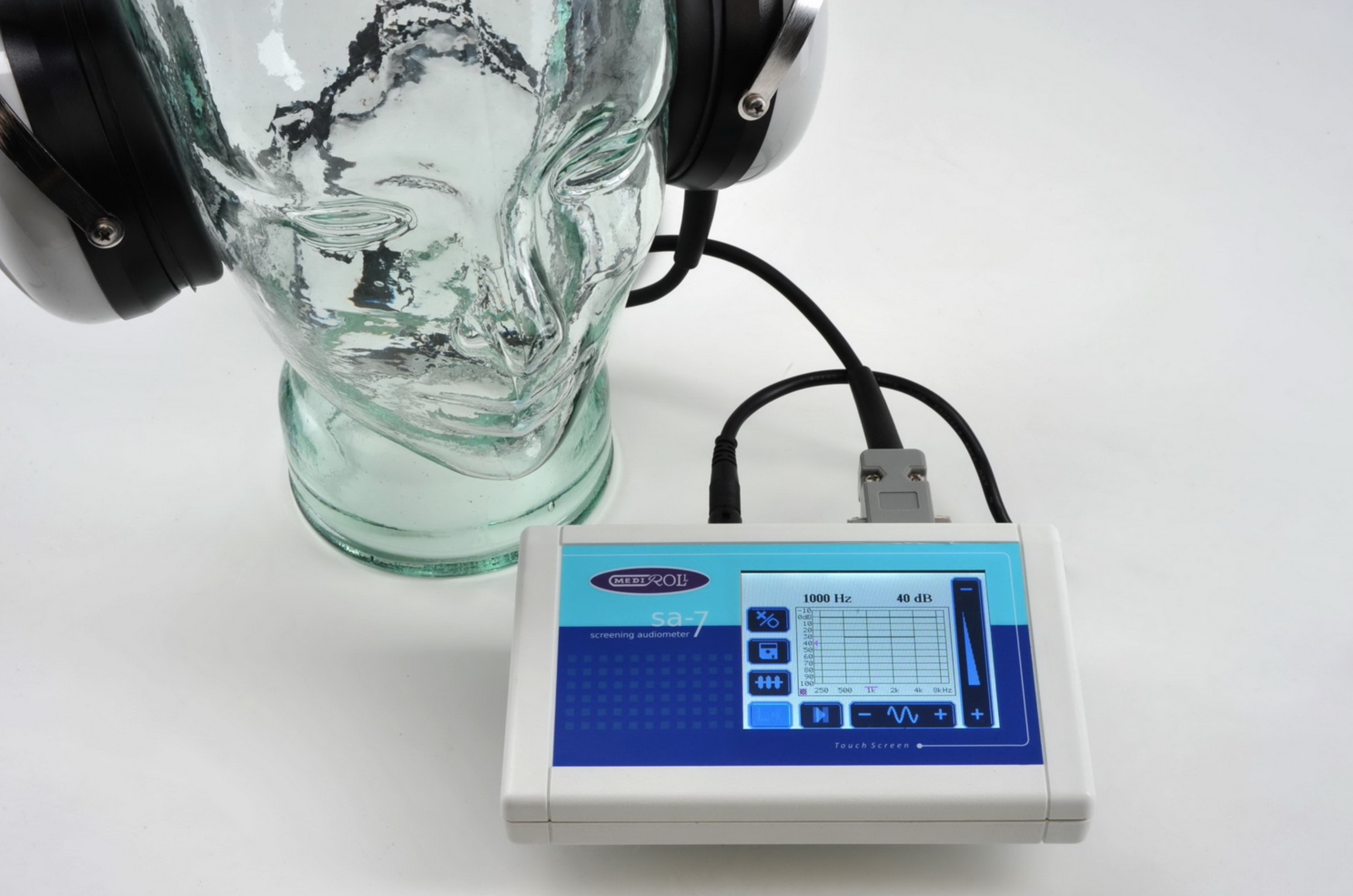 Malý, farebný audiometer s dotykovým displejom, vstavanou pamäťou a počítačovým prevádzkovým módom. farebný...