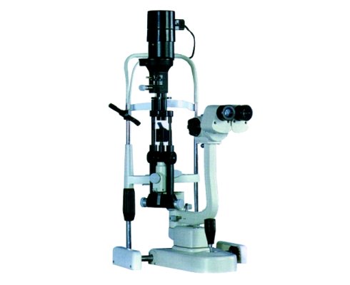 Štěrbinová lampa střední kategorie se sklopným nástavcem a třemi stupni zvětšení, která je doporučena pro p...