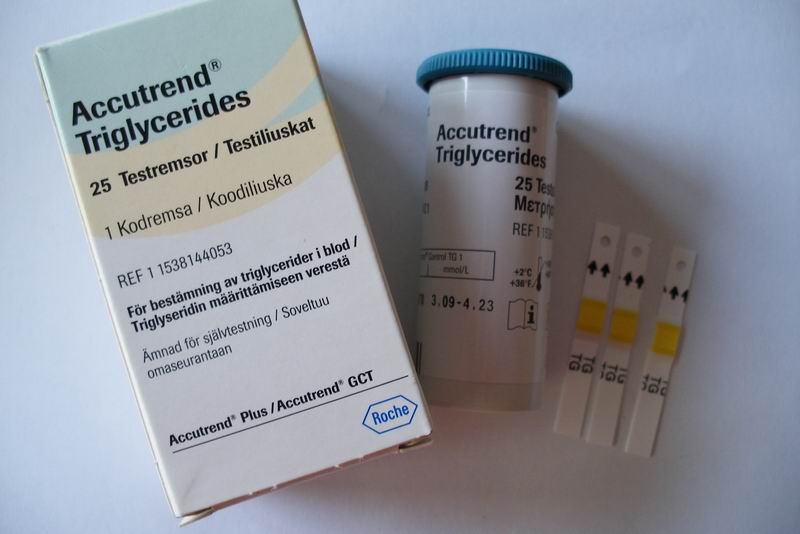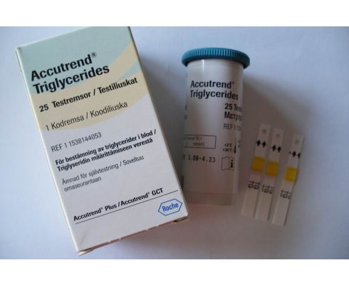 25 meracích prúžkov na stanovenie triglyceridov v krvi.