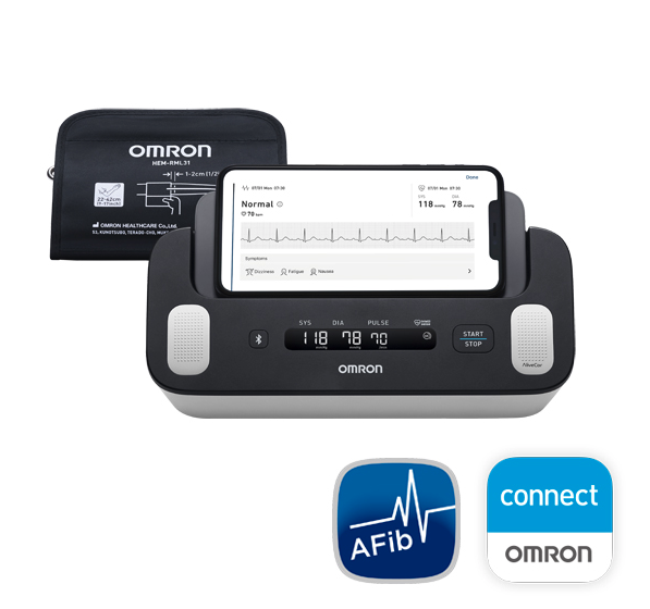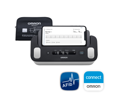 - automatický tlakomer na pažu s meraním EKG (EKG vyžaduje použitie vášho smartfónu s aplikáciou OMRON Connect)