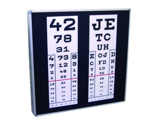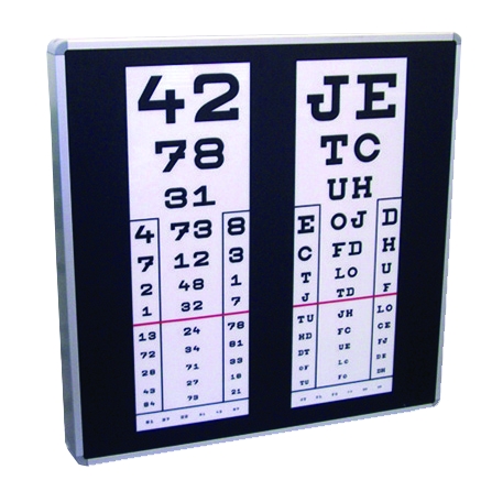 Bez plexi skla! Tabule na vyšetření zraku (Vizus) Kettesy: Rám připevnitelný na stěnu, vnitřní osvětlení. B...