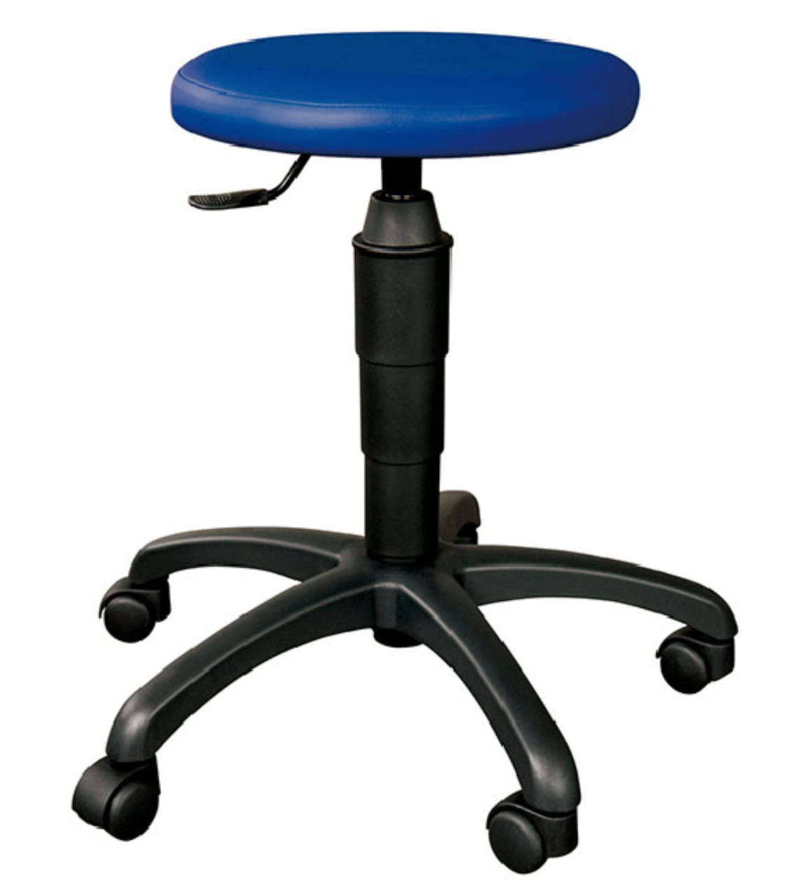 Židle na podstavci z umělé hmoty, na kolečkách. Výšku sedadla lze nastavit v intervalu 48 - 57 cm pomocí pl...