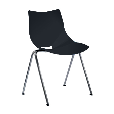 Židle s opěradlem a chromovanou konstrukcí. Židle má široké, pohodlné sedadlo. Konstrukce bez područek.